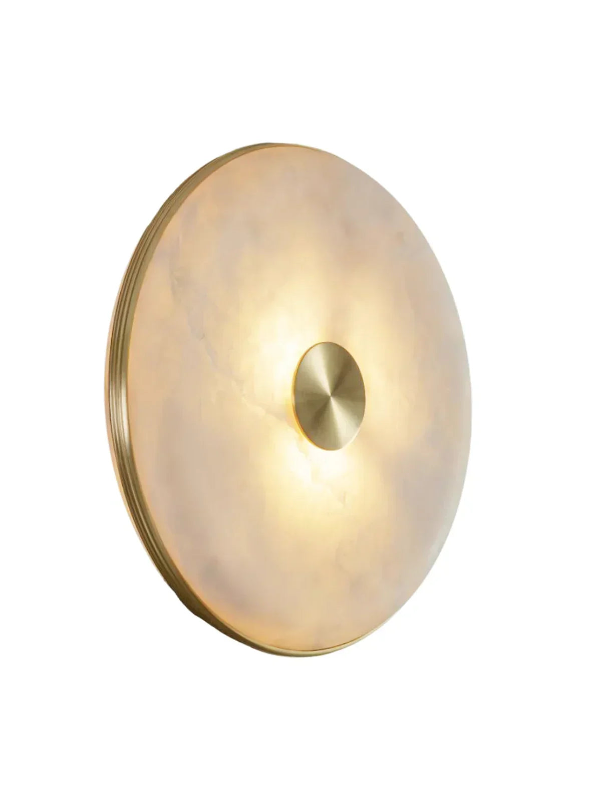 Experience the warmth and elegance of the Round Beran Alabaster Wall Light. Made with the finest alabaster from Spain, its soft and durable texture creates a gentle, calming light that invites you in. Elevate your space with this stunning and timeless piece.
