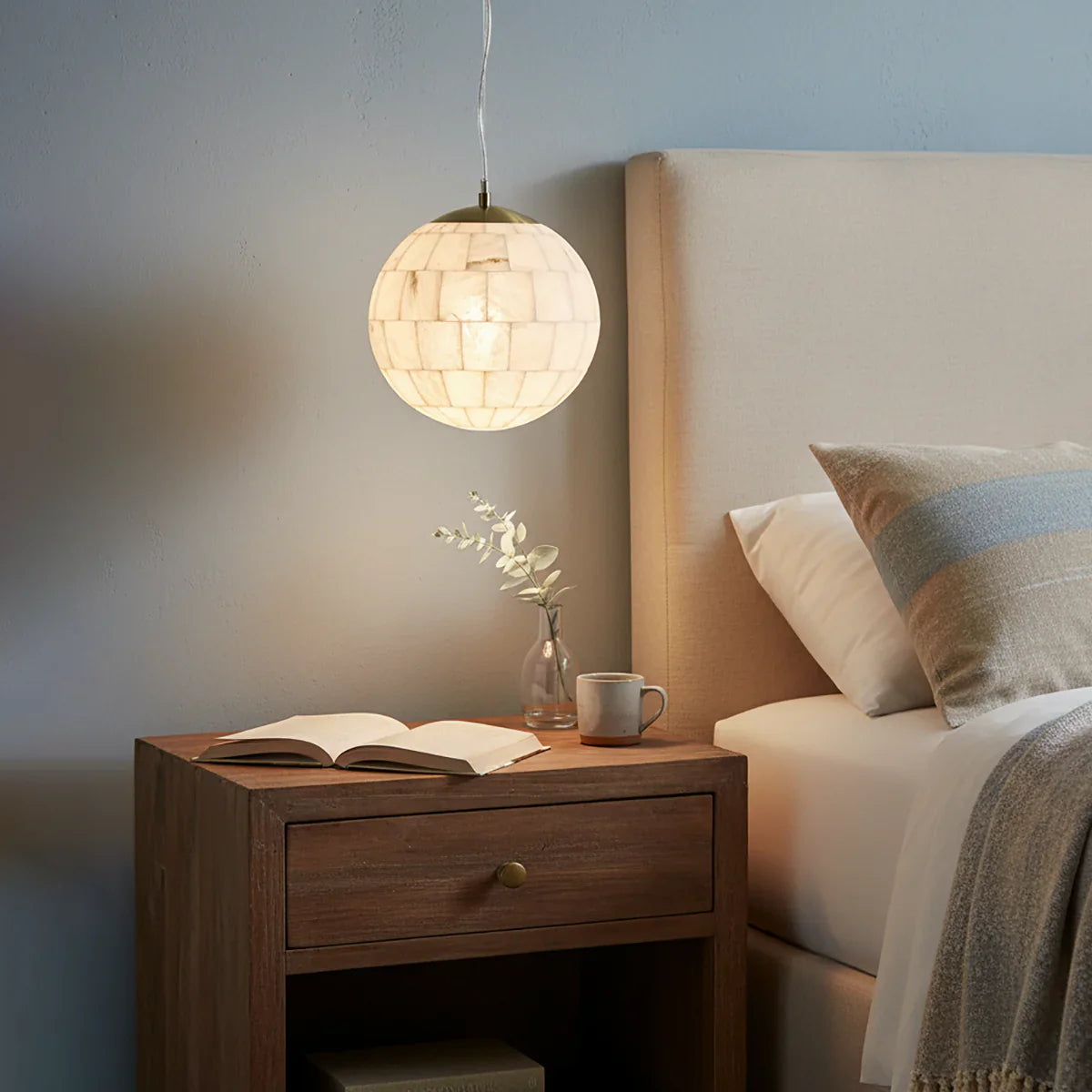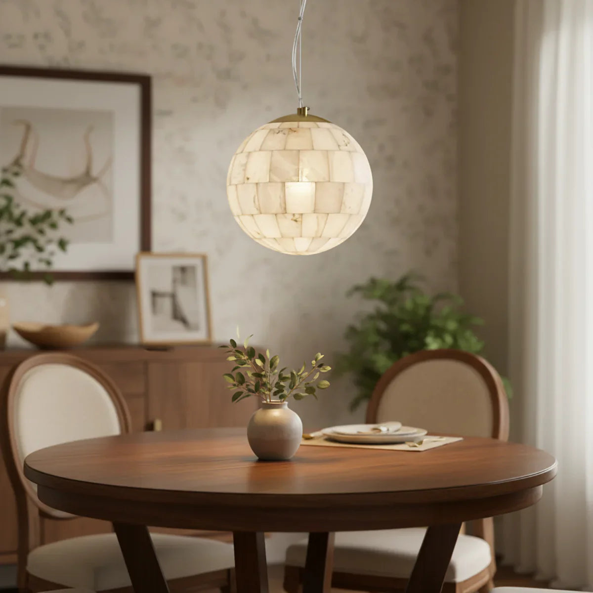 Infuse your living space with timeless elegance and sophisticated modernity! This Alabaster Ball Pendant Light is a perfect blend of natural alabaster and luxurious brass. A striking accessory, its refined and contemporary design makes it ideal for any modern home. Forming a perfect spherical shape, the stone's unique translucent texture and warm hue lend each light fixture a unique and sophisticated artistic feel.
