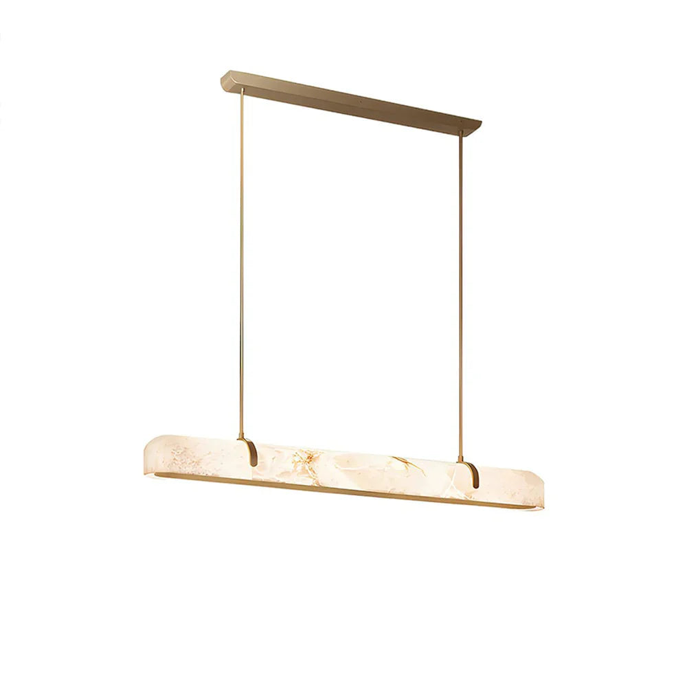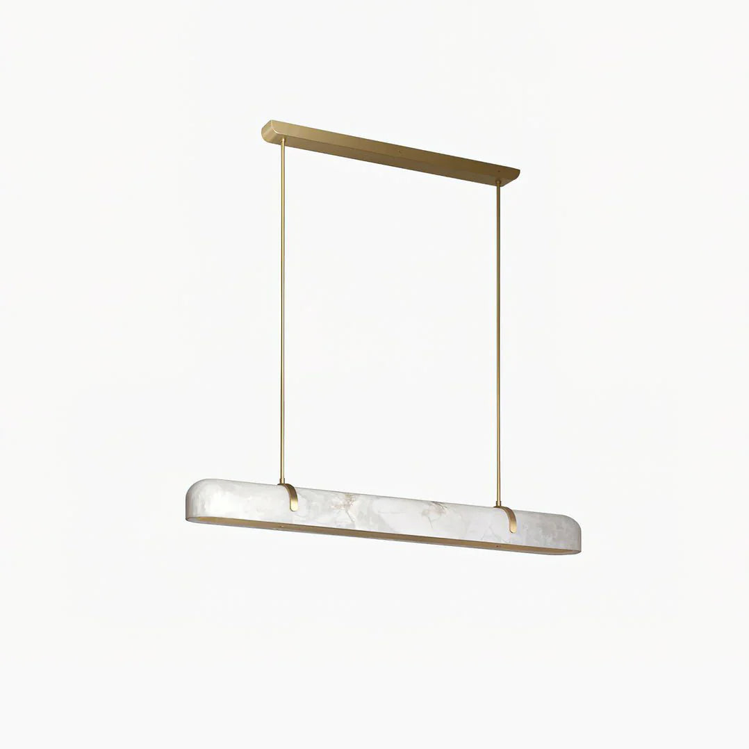 Transform your space with our Alabaster Linear Brass Chandelier. This stunning hanging light adds a delicate touch, casting a dreamy glow and creating an ethereal atmosphere. With energy-efficient LED lighting, it appears to levitate, evoking a sense of serenity and tranquility.