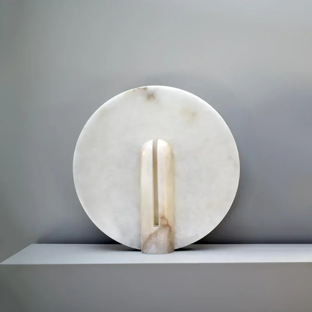 Add a touch of sophistication and artistry to your space with the Alabaster Modern Disc Table Lamp. Boasting a unique design with a sleek disc and pointed prism made of natural alabaster, this lamp creates a warm, ambient glow that elevates any modern or classic interior. Perfect for nightstands, desks, or side tables!