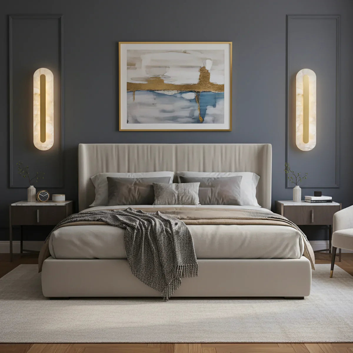 Elevate your ambiance with the understated charm of the Alabaster Gold Oval Wall Light. Carved from natural alabaster and framed with a sleek golden accent, this minimalist sconce radiates a warm, soothing glow perfect for crafting a peaceful retreat in any room. Whether mounted vertically or horizontally, its versatile oval silhouette adds both function and refined beauty to your walls.