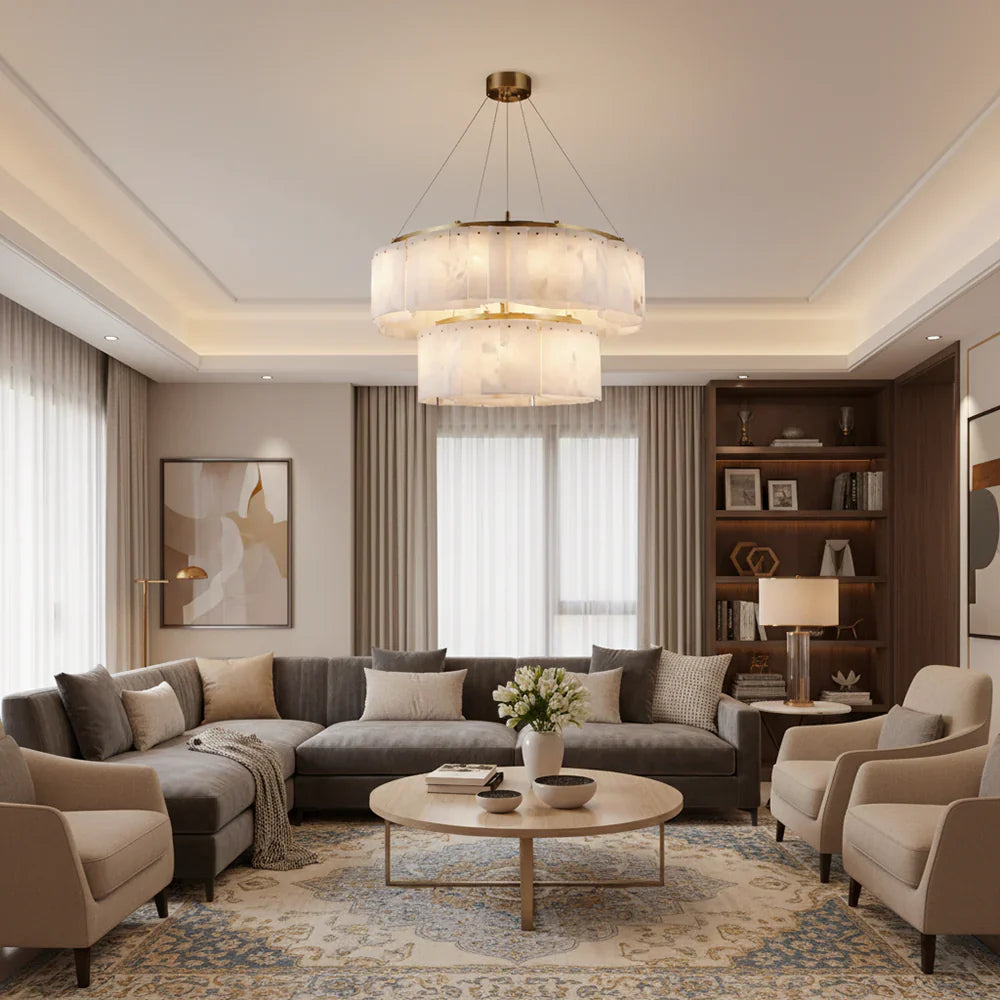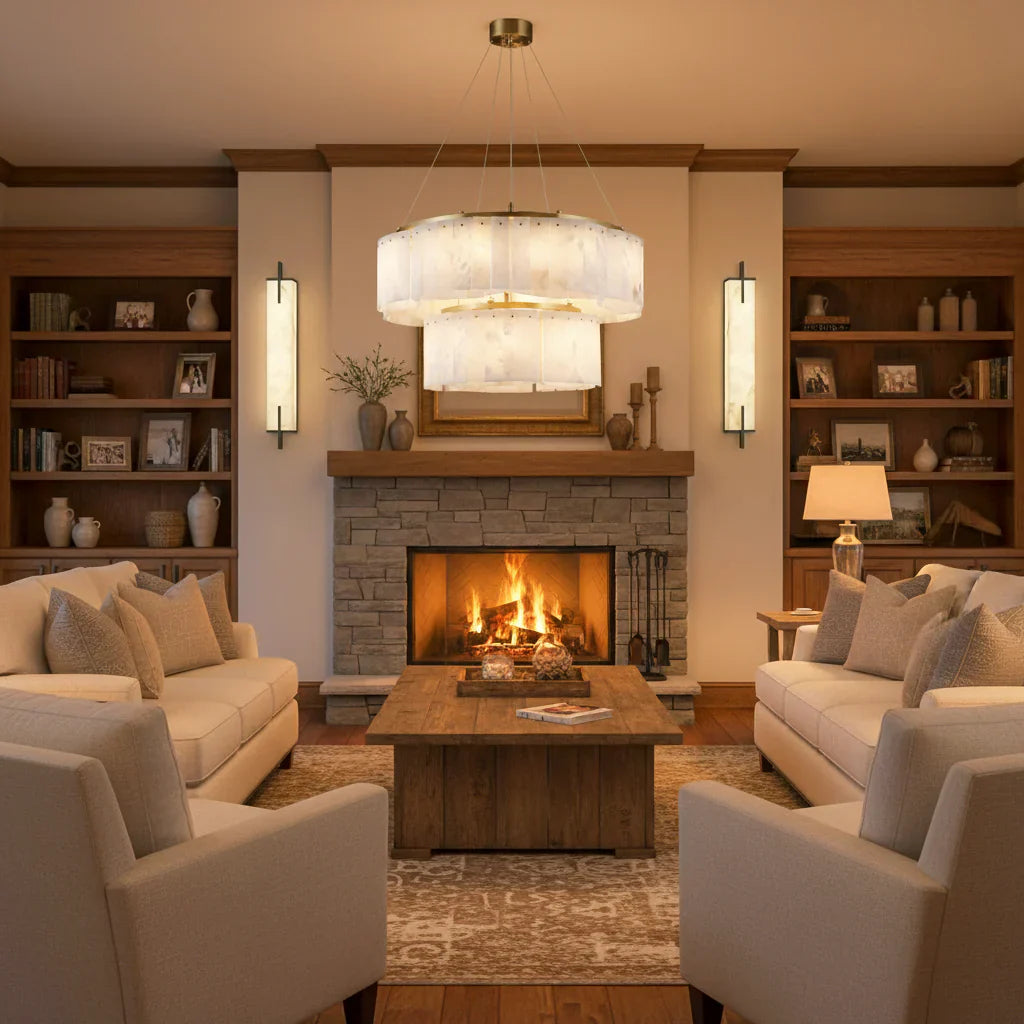 It highlights the focal point of our home's decor. It draws the eye upward, making the whole room feel more grand. Very happy with the look. It's modern, stylish, and provides us with wonderful light.