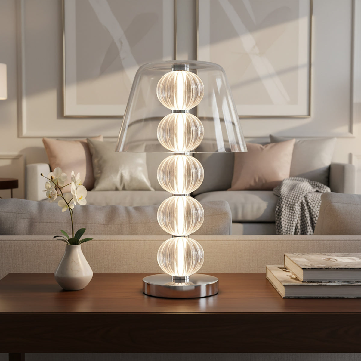 This Amulet Table Lamp A, with its modern design, creates a dazzling visual focal point, illuminating your living space with warmth and ambiance. A practical light fixture that brings a tranquil magic to every room.