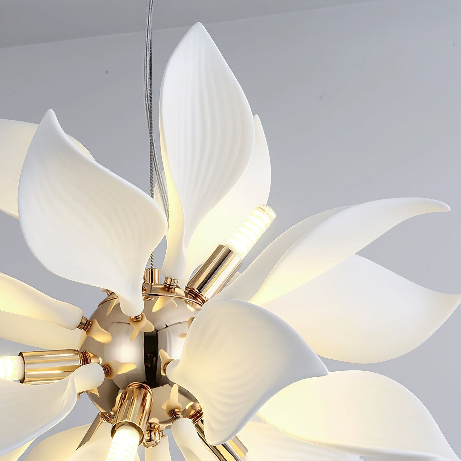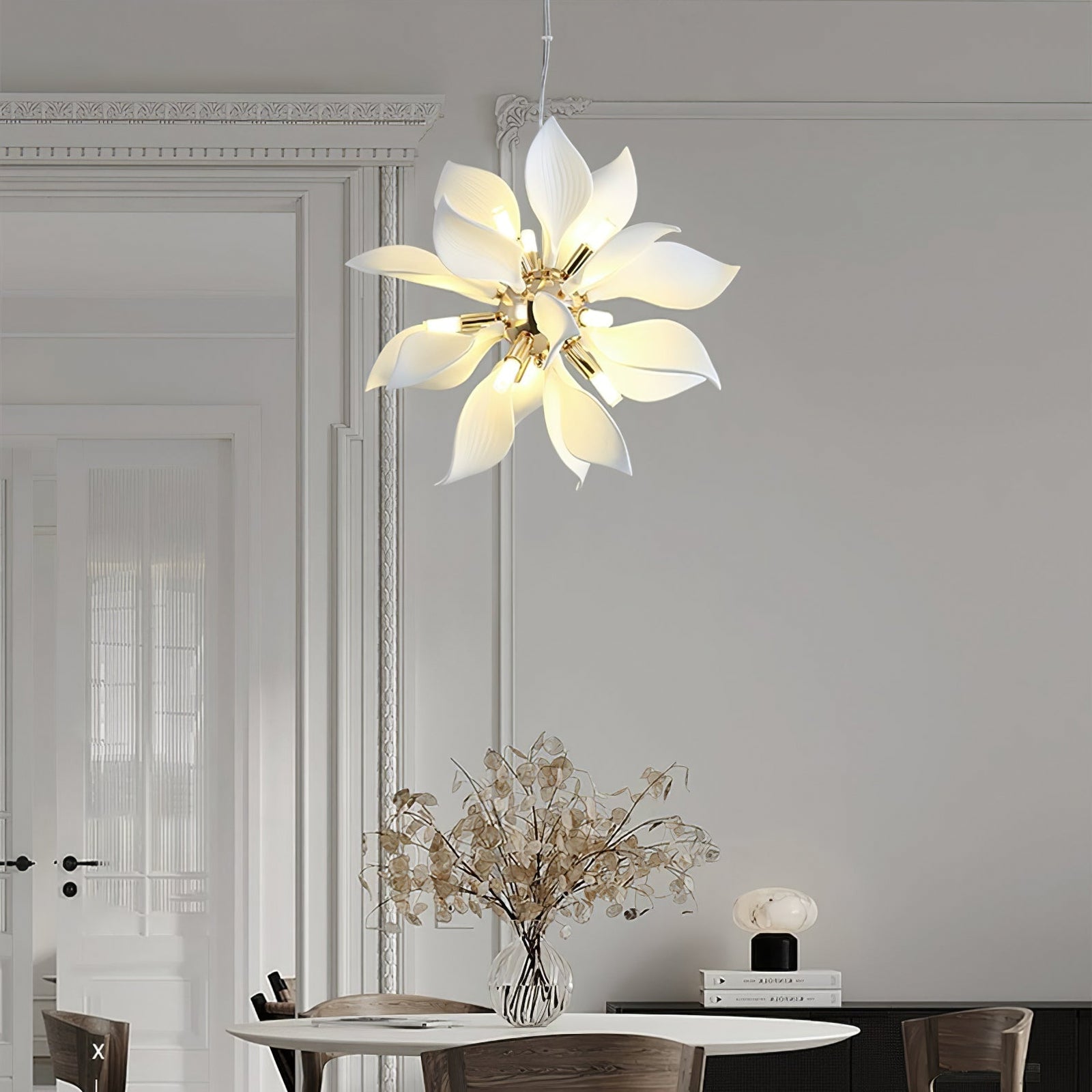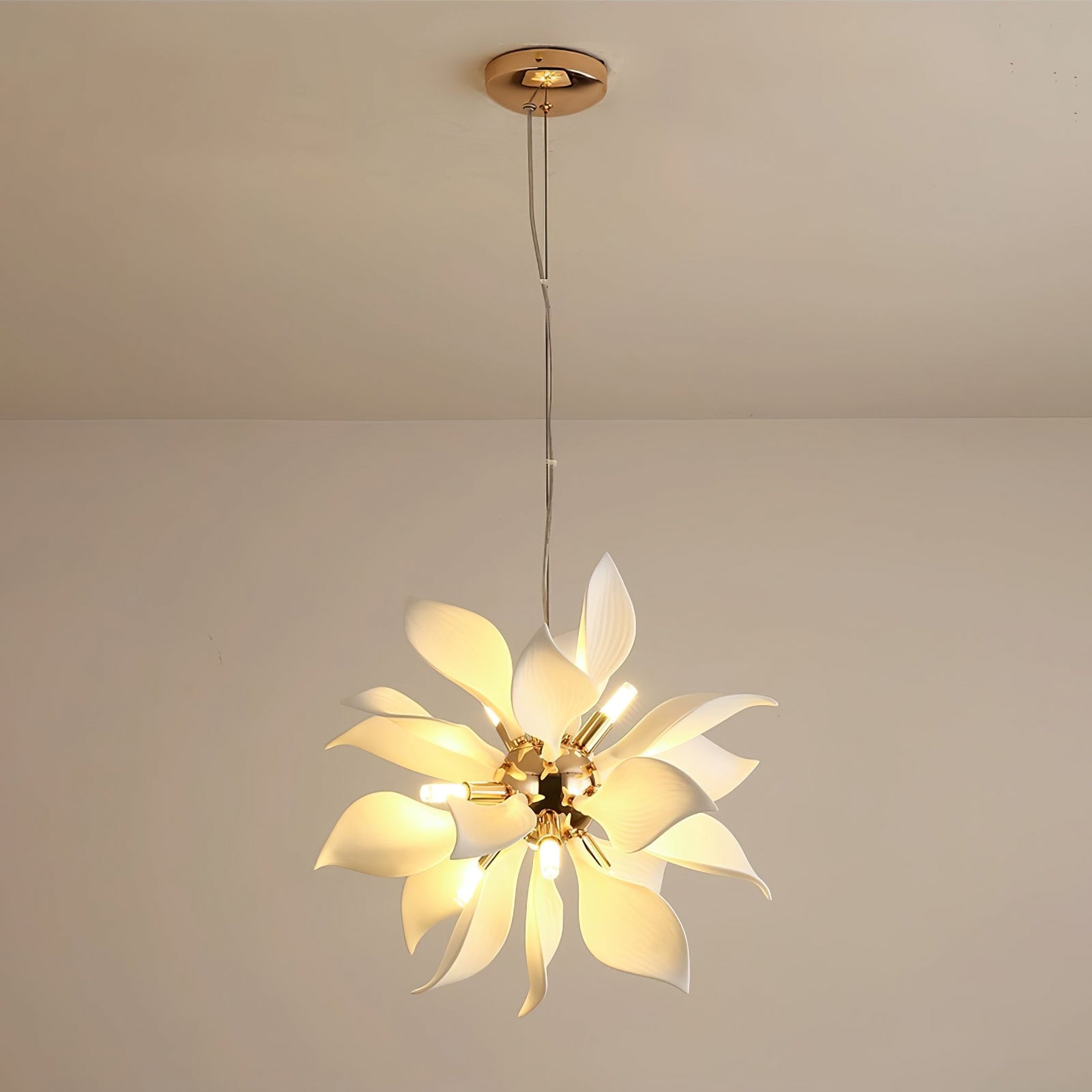 The Ceramic Petals Blooming Chandelier elevates the style of your space with its timeless charm. Its exquisite handcrafted design and sturdy construction add a touch of elegance to any room. Delicate floral details and warm lighting create a cozy and inviting atmosphere, ideal for relaxation and entertaining guests. This stunning chandelier adds a touch of elegance to your home décor!