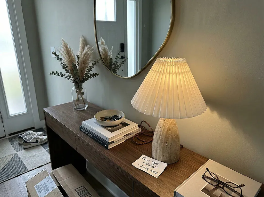 Something that serves both as lighting and as wall decor. This alabaster wall sconce exceeded my expectations. The natural stone grain is stunningly beautiful, and each fixture is unique with slight variations. The light shines softly through the stone, not glaring.
