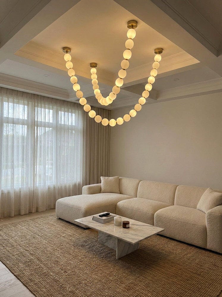 I was initially hesitant to buy such an expensive lamp online, but this marble pendant light exceeded all my expectations. The natural marble texture is beautiful – no two pieces are exactly alike, which gives it a high-end, custom feel. The lamp body is heavy and solidly built. When lit, the warm light it emits creates a warm and comfortable atmosphere in my living room. If you're still hesitant, just buy it.