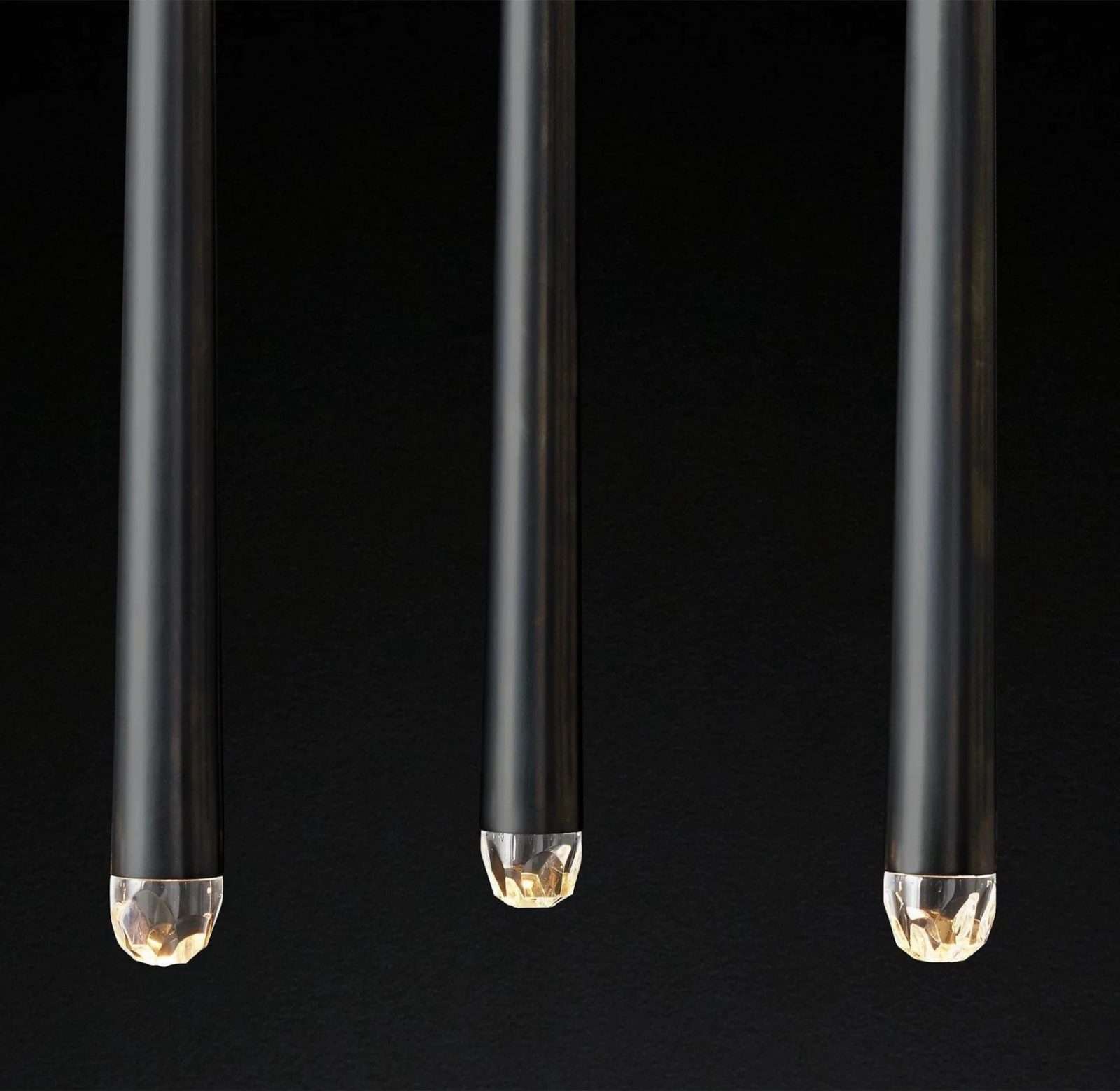 A minimalist masterpiece will add an elegant touch to your interior space. This Long Dish Brass Art Crystal Chandelier, a sculptural chandelier, features a solid brass silhouette and is suspended by clean black wires, creating a striking visual focal point and exuding refined style. Built-in LED bulbs emit a warm glow, highlighting the fixture's exquisite geometric form without sacrificing modern energy efficiency. For design enthusiasts who appreciate understated luxury, this is undoubtedly a timeless investment.