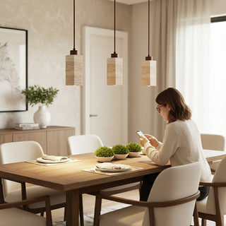 Elevate your space with our exquisite Natural Travertine GLigEt Pendant Light! This pendant light is a perfect tribute to natural materials and modern minimalism, bringing a unique sophistication to your home. The simple square or round cylindrical design, paired with wooden or metal accents at the top, blends seamlessly into Scandinavian, Wabi-sabi, or modern minimalist styles. Its geometric lines make it ideal for decorating dining tables or bars with multiple pendant lights.