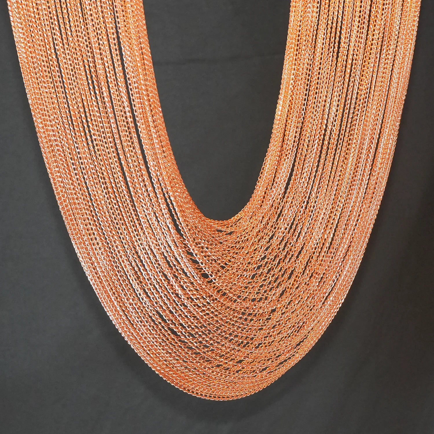 The Otero Pendant Light exudes a warm and elegant beauty that will surely add brilliance to your daily life. Handcrafted from a delicate copper chain, it features a unique and graceful curve, inspired by the romantic world of jewelry. The light emanates from two copper rings, passing through the chain to create a dreamlike atmosphere.