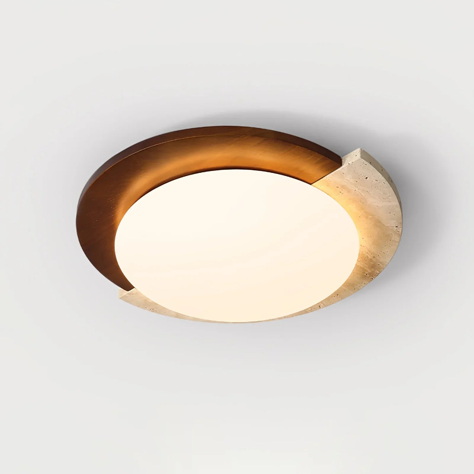 Transform your living space into a celestial oasis with the Round Eclipse Halo Travertine Ceiling Lamp. Combining travertine and brushed metal, this lamp adds a refined and ambient touch while providing both style and functionality. Elevate your decor with its glowing circular design.