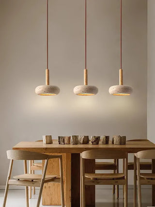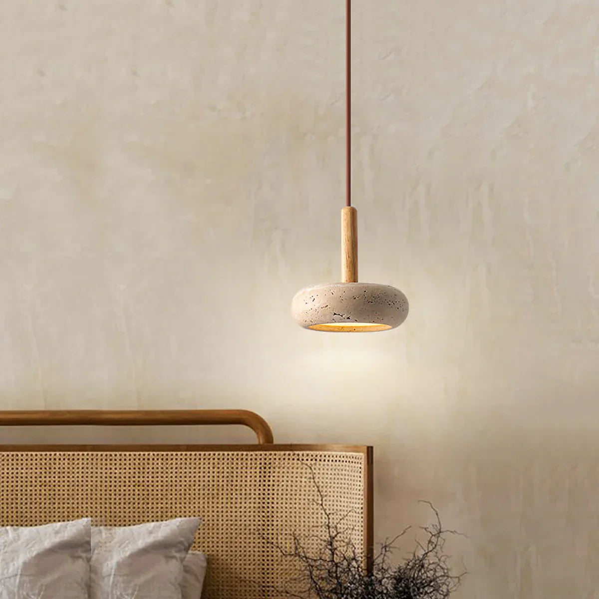 Step into natural elegance with our Round Travertine Pendant Light. The lamp's raw wood body is expertly crafted for a smooth, moisture-resistant finish that adds a touch of refinement to any room. The lampshade, made from finely polished yellow cave stone, brings a simple and natural charm. Its textured surface gently filters light, creating a soft, stylish ambiance that enhances your living space with warmth and character.