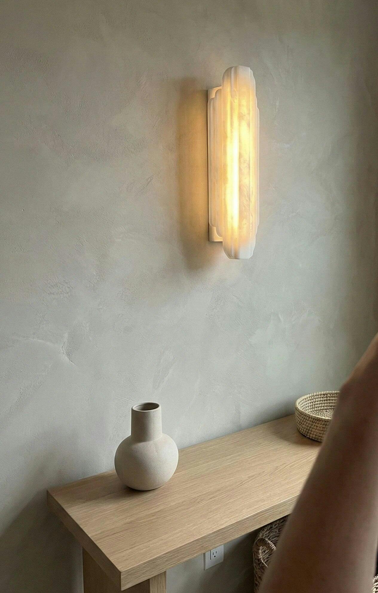 I stumbled upon this alabaster wall lamp while looking for unique lighting fixtures for my hallway renovation. The vertical stripe design adds a touch of sophistication. Because it's made of natural stone, the texture of each lamp is slightly different, making it look like a custom-made, high-end piece. The lamp body is heavy and feels substantial, and installation was simple.