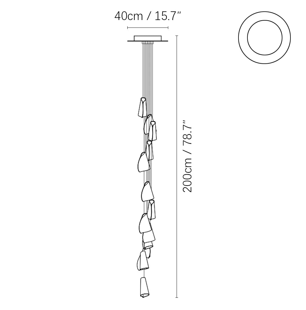 - 13 Heads Dia 40cm x H 200cm / ∅ 15.7″ x H 78.7″(Round ceiling plate)