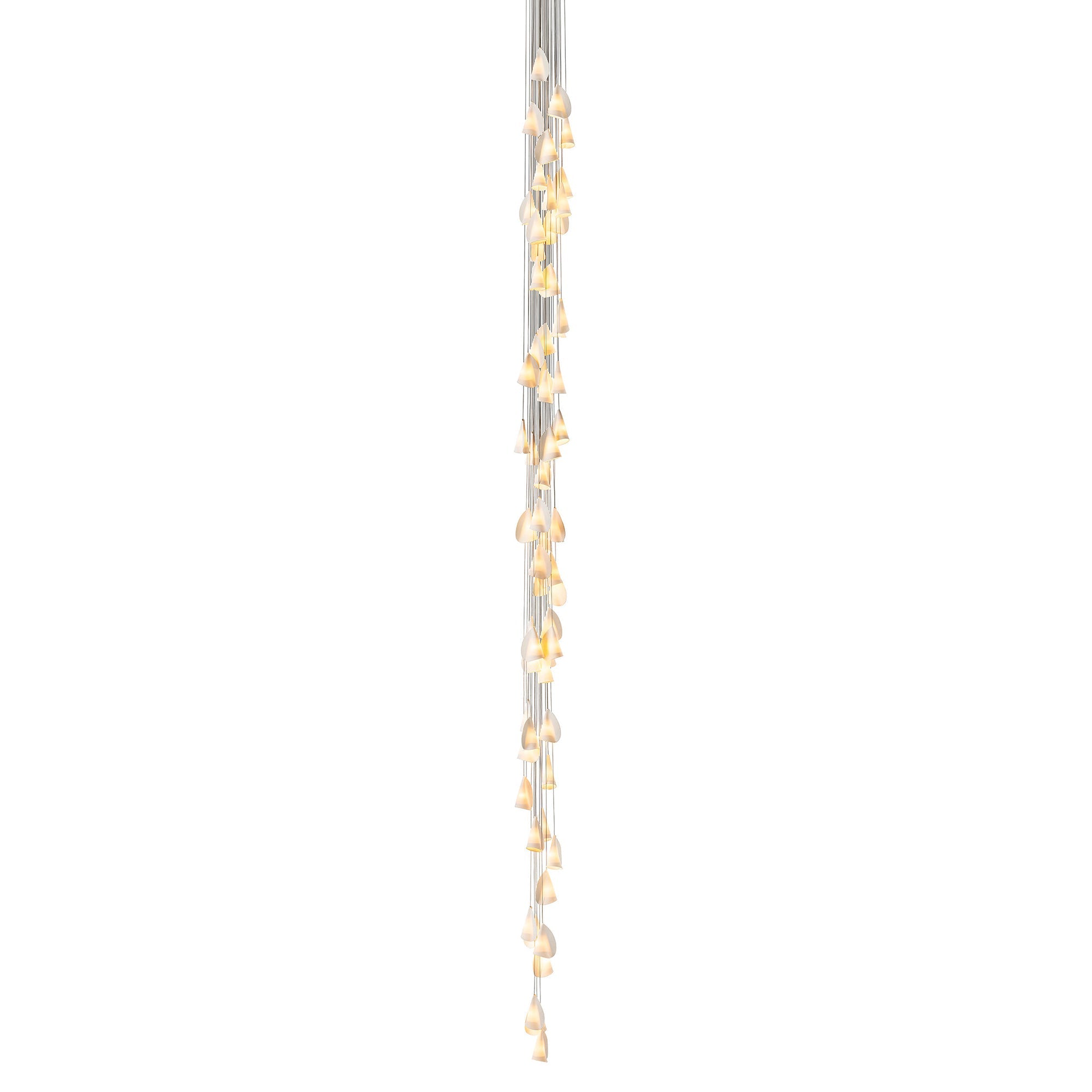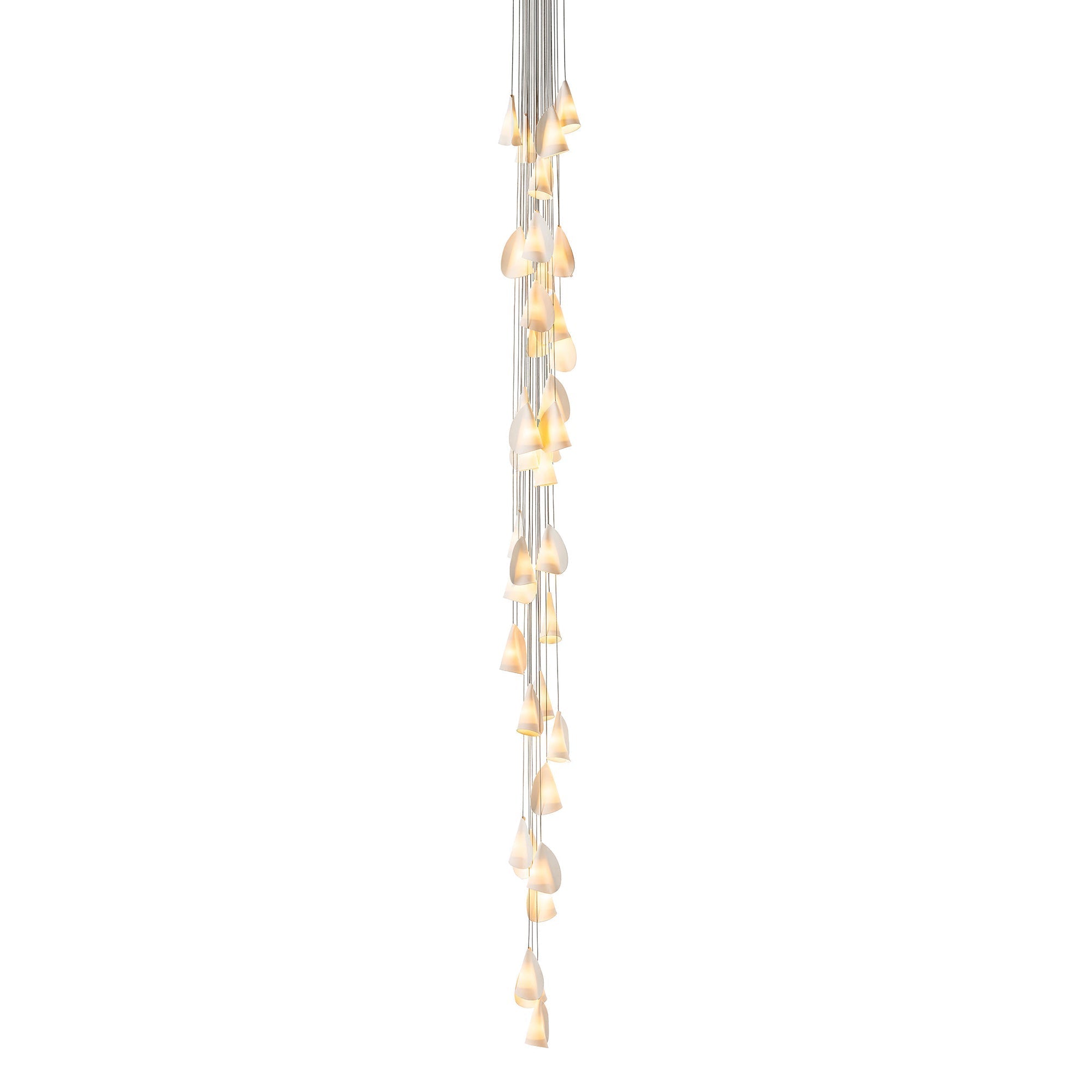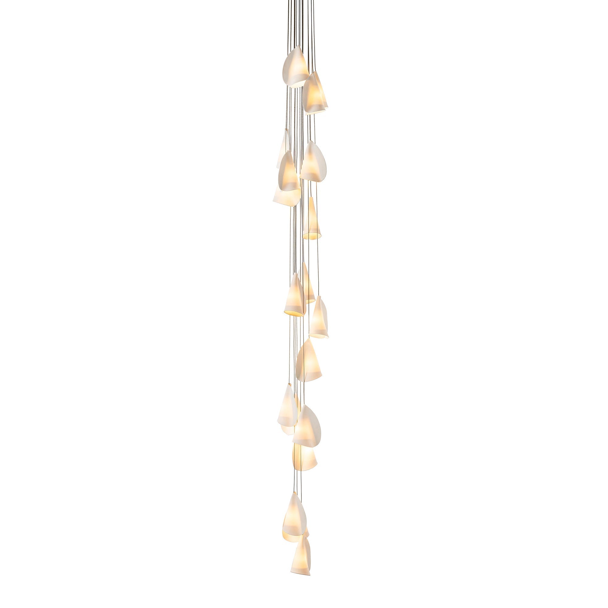 The Series 21 Pendant Light Cluster is a modern and customizable lighting solution featuring fourteen pendants hung in a random configuration. With adjustable drop lengths and a range of heights to choose from, this cluster creates a unique ambiance and scattering of light in any space. Versatile and contemporary, it's the perfect addition to your home or commercial setting.