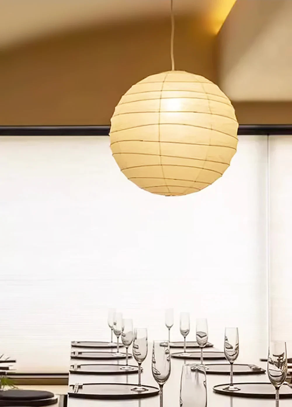 Transform your space with the harmonious blend of traditional craftsmanship and contemporary design. Handcrafted with washi paper, the Spherical Paper 45D Pendant Lamp features a metal frame for added stability and exudes elegance and sophistication with its iconic paper lantern design.