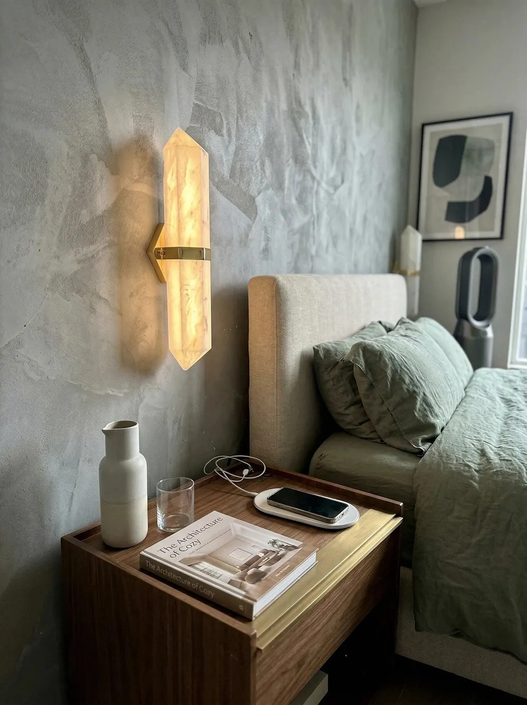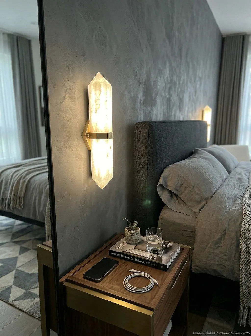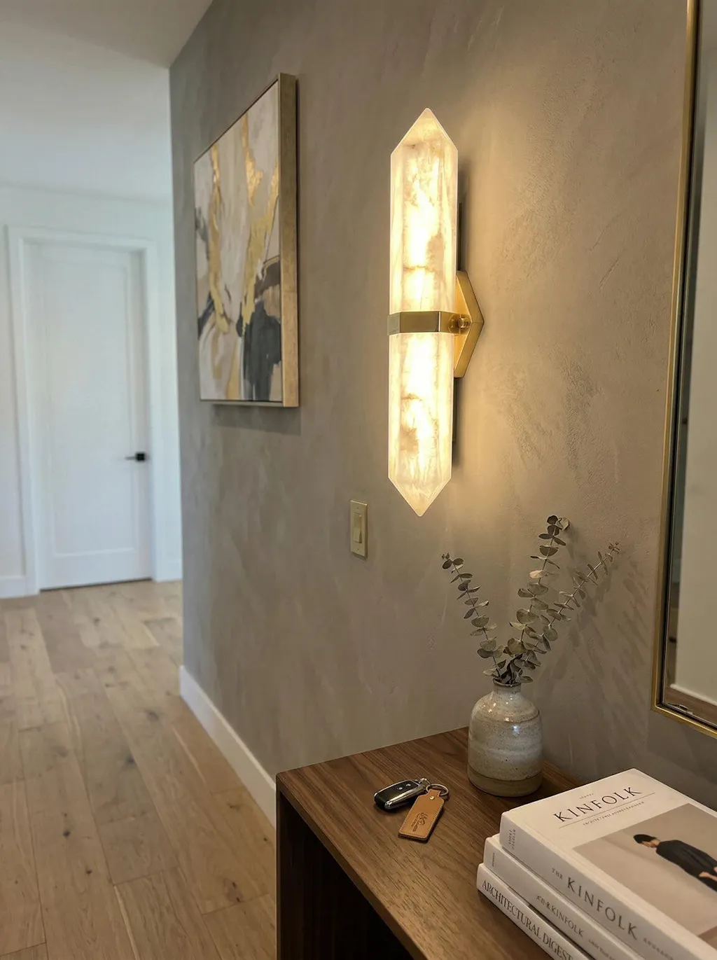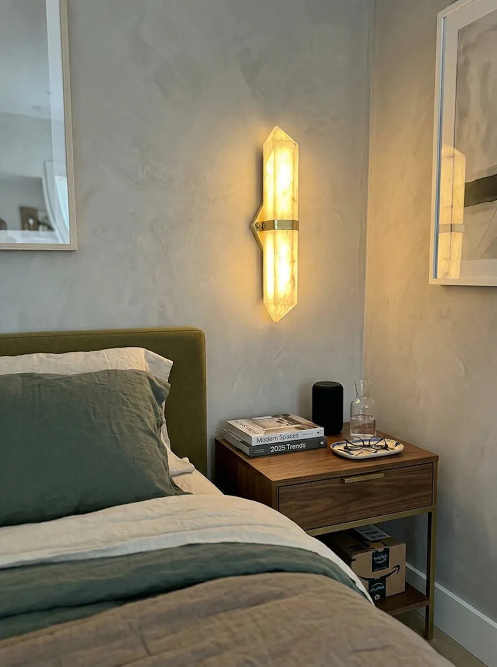 Something that serves both as lighting and as wall decor. This alabaster wall sconce exceeded my expectations. The natural stone grain is stunningly beautiful, and each fixture is unique with slight variations. The light shines softly through the stone, not glaring.