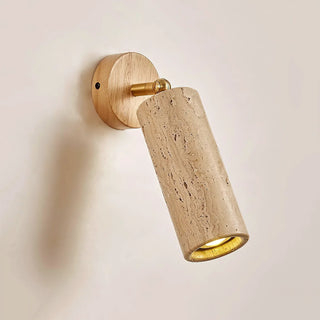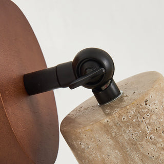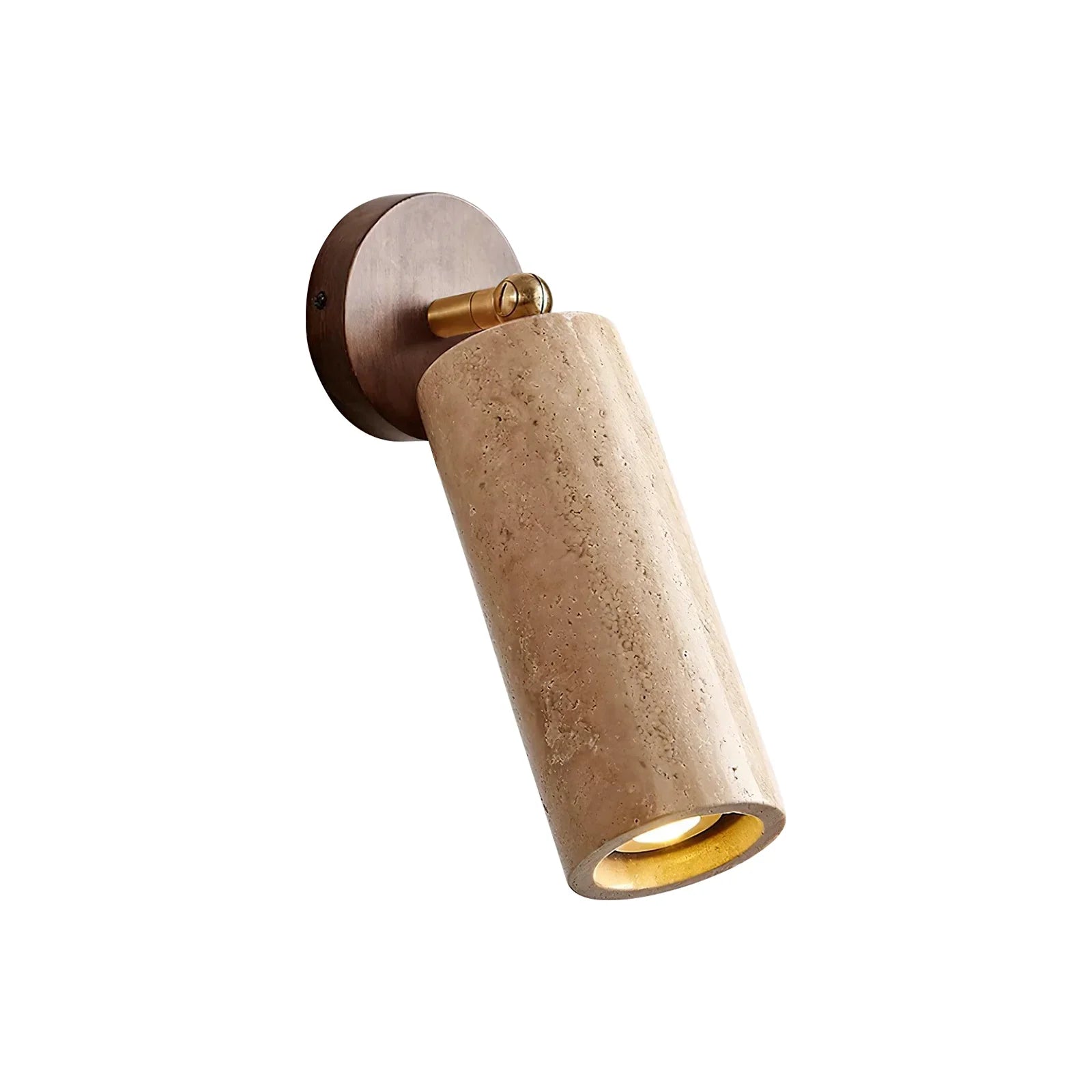 Experience the perfect fusion of craftsmanship and nature with the Travertine Mireille Wall Lamp. The natural wood and yellow travertine base, along with the golden metallic joint, create a refined yet modern texture. Adjust the angle of the lampshade to illuminate any space, adding a touch of brilliance to your home.