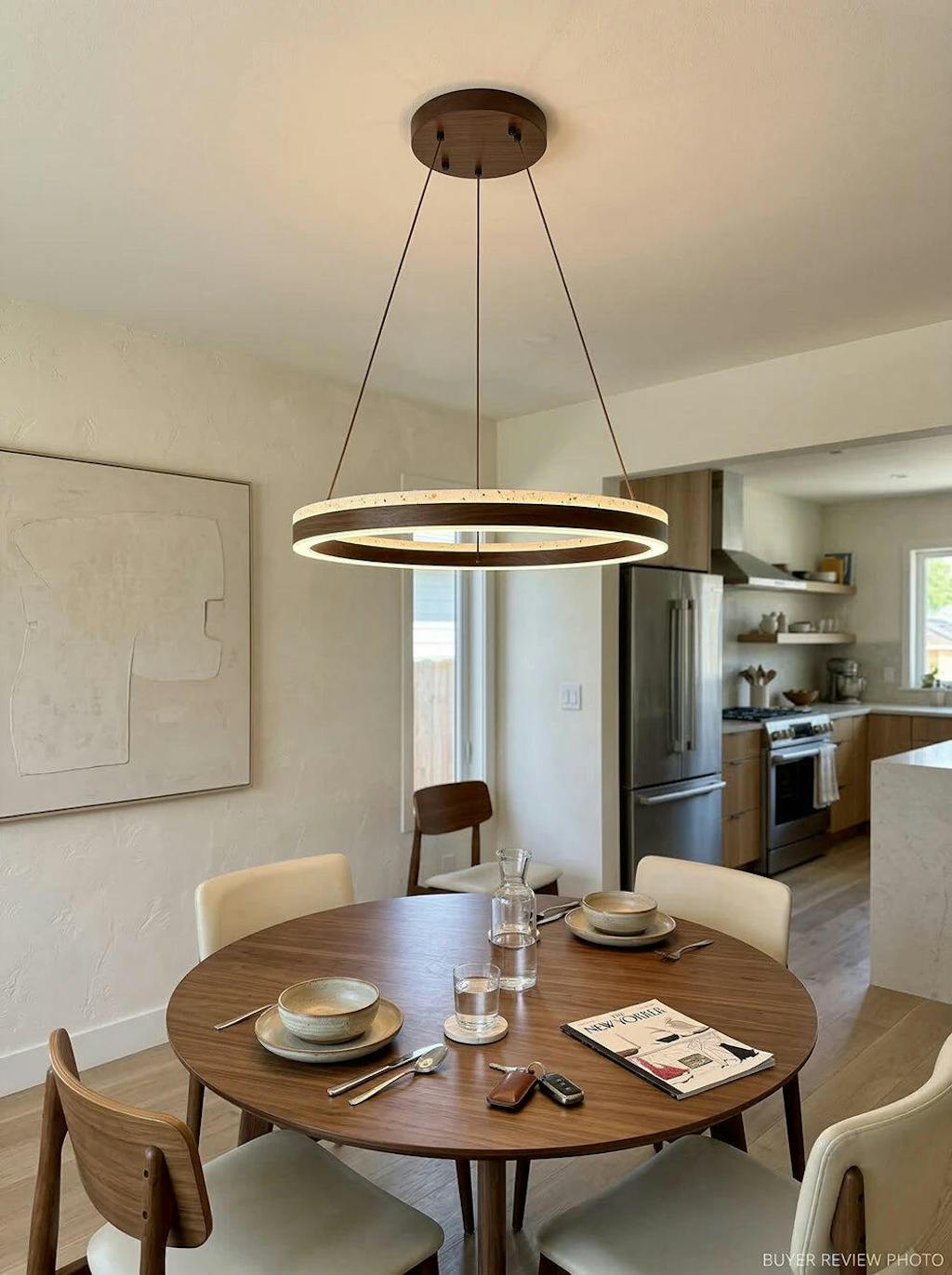 The texture of the plaster is even more exquisite in person than it appears in the pictures; that soft, warm white tone feels incredibly high-end. The circular design strikes the perfect balance—it feels distinctly modern without being overly rigid or stark. It hangs in my living room, blending in perfectly with the decor. The lighting is soft and even; looking at it every evening brings me joy.